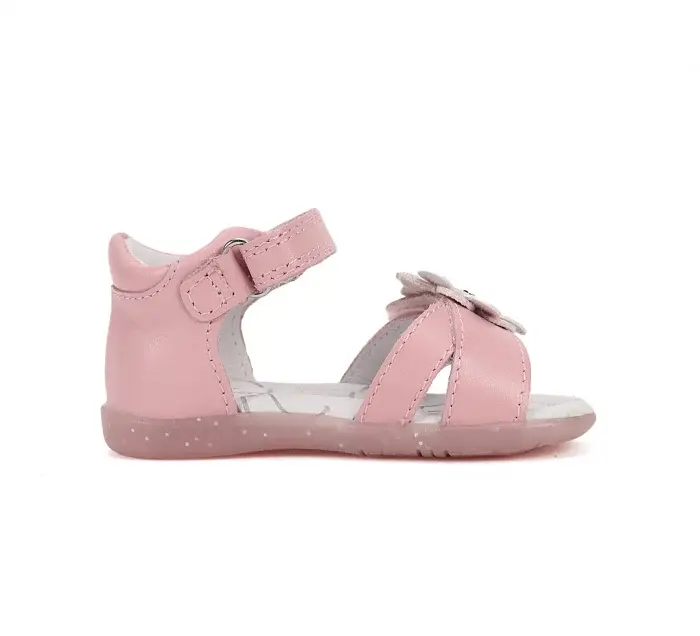 Sandale D.D. Step Copii, piele naturala, talpa flexibila, roz, floricica